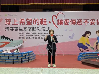 台灣更生保護會台中分會8日舉辦清寒更生家庭贈鞋活動,國民黨籍立委楊瓊瓔(圖)出席表示,捐贈活動對更生朋友是有力的支持,感謝更生保護會為社會注入穩定力量。