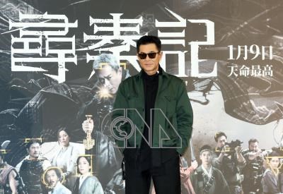 港星古天樂(圖)當年演出戲劇「尋秦記」造成轟動,時隔25年後再推電影版「尋秦記」,身兼監製的古天樂9日下午現身台北,為電影宣傳造勢。