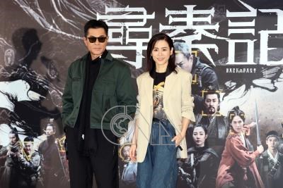 電影「尋秦記」將於9日全台上映。港星古天樂(左)、宣萱(右)來台宣傳,9日下午在台北與媒體見面。
