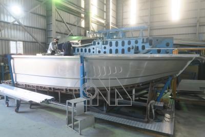 科建鋁船專門製作鋁合金船體,圖為尚未完成製作的鋁合金船身。