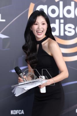 韓國音樂圈年度盛事「金唱片」10日在台北大巨蛋舉行第40屆頒獎典禮,下午由紅毯率先暖場打頭陣,由JTBC主播金夏恩(圖)扛起主持棒。