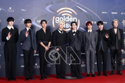 第40屆金唱片頒獎典禮10日首度移師台北大巨蛋舉行,會前場外紅毯星光雲集,韓國人氣男團ATEEZ(圖)帥氣亮相。