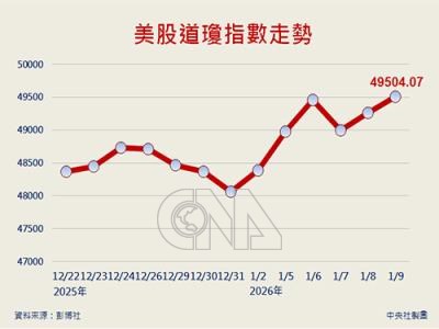 (中央社台北10日電)投資人無視經濟數據多空參雜,且美國最高法院未對川普關稅措施合法性做出裁決,華爾街股市今天收紅。道瓊工業指數終場上漲237.96點,或0.48%,收在49504.07點。標準普爾500指數上漲44.82點,或0.65%,收在6966.28點。以科技股為主的那斯達克指數上漲191.33點,或0.81%,收在23671.35點。費城半導體指數上漲202.683點,或2.73%,收在7638.781點。1150110