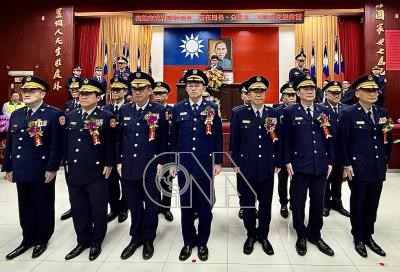 高雄市政府警察局20日下午進行新卸任局長、分局長、大隊長聯合交接典禮,市長陳其邁(後中)出席主持。