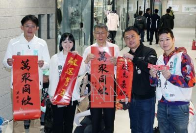 柯文哲黃國昌一同出席萬眾同欣發春聯囉活動