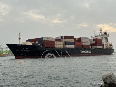 陽明海運「環明輪」日前進入高雄港時,遭海關查獲船艙內夾帶大量毒品海洛因,初步了解疑為尤姓幹部涉運毒,船上人員為自保通報。圖為115年1月29日傍晚環明輪駛進高雄港第二港口。