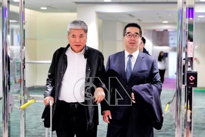 國民黨副主席蕭旭岑(右)4日晚間率團自中國返台,他表示,此行成果豐碩,未來若國民黨能夠有機會重返執政,一定會重啟雙向、平等、互惠的交流。