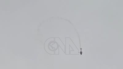 西班牙空軍直升機特技小組Patrulla ASPA在阿根廷首都布宜諾斯艾利斯上空進行高速升降飛行展示。