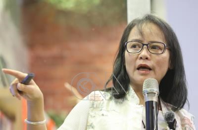2026台北國際書展的眷村雜誌及北投中心新村展區在展期間安排多場講座,北一女教師區桂芝(圖)5日下午應邀以「我的中國情懷」為題進行演講。