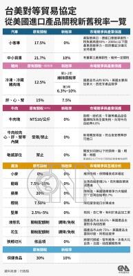 台美對等貿易協定從美國進口產品關稅新舊稅率一覽