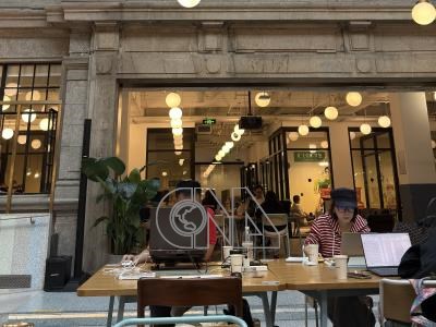 共享辦公室成為部分中國新創公司與自由職業者的新選擇,光是共享辦公室租賃商WeWork在上海就有超過20處據點。圖為在上海靜安區WeWork工作的中國青年,攝於114年10月14日。