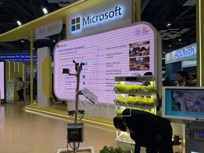 在印度進行的人工智慧影響力峰會期間,展示了許多人工智慧(AI)的應用。圖為廠商藉微軟發展符合印度所需的AI農作系統。