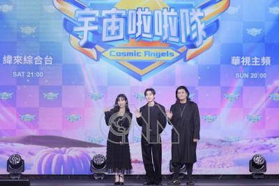 大型原創實境選秀節目「宇宙啦啦隊」3日下午在台北舉行開播記者會,製作人B2陳彥銘(右)與韓團SUPER JUNIOR成員銀赫(中)、藝人藤井麻由(左)一同出席,分享節目錄製時發生的趣事。
