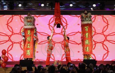 115年工商團體春節聯誼活動3日下午在台北福華大飯店舉行,開場呈現精彩舞獅表演,祝福新的一年各行各業生意興隆、馬年行大運。