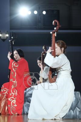 2026台北市傳統藝術季18日在台北中山堂舉行開幕記者會,采風樂坊在現場演奏2026東方器樂劇場「十面埋伏」精彩片段,為活動揭開序幕。