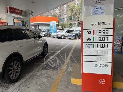 受到中東戰事影響,油價調漲。上海一家中國石化加油站26日陳列今日油價表,92號汽油每公升人民幣8.53元、95號汽油每公升人民幣9.07元。