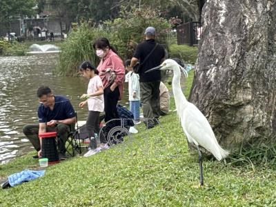 台灣北部、東半部28日可能有局部雨,29、30日各地晴朗且氣溫升,30日晴熱如夏,下週有兩波鋒面,其中4月2日至5日偶有強對流恐伴隨雷擊、強風、瞬間強降雨,圖為台北內湖區公園內釣魚休憩民眾與大白鷺。