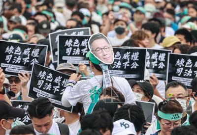 民眾黨329凱道集會 支持者戴柯文哲照片力挺