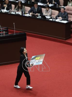 民眾黨立委李貞秀(前)7日首度在立法院會質詢,不過行政院長卓榮泰及內閣官員都未上台備詢。