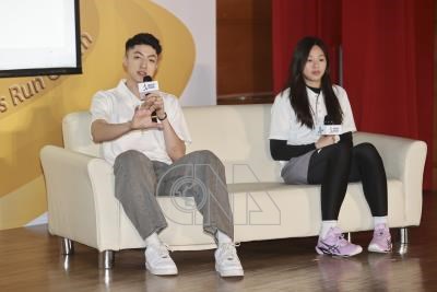 115年全國大專校院運動會8日舉行聖火引燃儀式,我國擊劍好手李讓(左)與網球選手李謙(右)出席記者會,兩人皆期待在全大運拿出佳績。