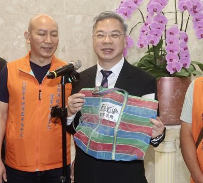 經濟部長龔明鑫(右)9日在經濟部與市場、夜市代表面對面對談塑膠製品影響現況,龔明鑫表示,由於外袋可用環保袋代替,內袋的取代性較外袋低,塑膠袋平價專案將會優先製造內袋。