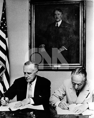 0001圖為顧維鈞大使〈右〉與勞勃森助理國務卿簽