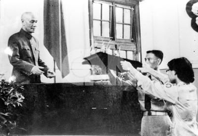 總統接受四十五年暑期青年戰鬥訓練總隊長曹宏才呈獻成果