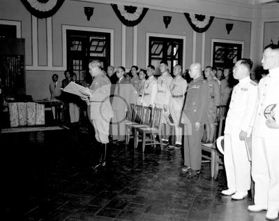 統府秘書長王世杰(左)代表總統接受陸軍總司令孫立