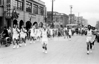 0241第6屆台灣省運動會,男子1600公尺接力決賽,可謂省運徑賽之壓軸好戲,此一項目,影響團體總積分甚大,因此賽萬分緊張。本屆省運該項比賽在爆出冷門,有奪冠實力的屏東縣,被雲林隊以3分46秒8的成績超前,留下扼腕的嘆息。圖為本屆省運男子1600公尺接力賽,雲林縣最後一棒隊員手持賽棒,率先抵達終點的畫面,照片中的他高舉雙手衝破終點,後面其他人都是模糊的背景,只有他是記者鏡頭下的唯一焦點。本屆省運男子1600公尺接力前三名分別為雲林縣、屏東縣和高雄市。